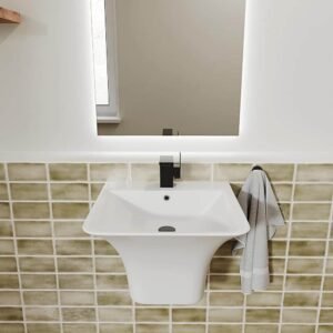 Carre Ceramic Wall Mount Bathroom Sink in Glossy White