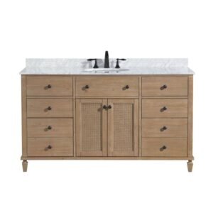 Annie 60 in. W x 22 in. D x 34.5 in. H Single Bath Vanity in Weathered Fir w/Marble Top in Carrara White w/White Basin
