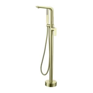 Single-Handle Freestanding Tub Faucet with Hand Shower in Brushed Gold