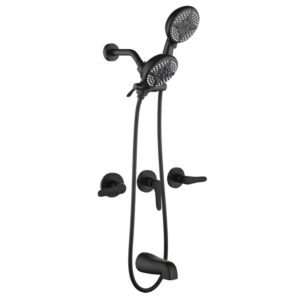 Triple Handle 5-Spray Tub and Shower Faucet 1.8 GPM Wall Mount Dual 2 in 1 Shower System Set Matte Black Valve Included