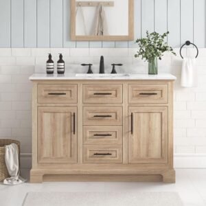 Doveton 48 in. Single Sink Freestanding Weathered Tan Bath Vanity with White Engineered Marble Top (Assembled)
