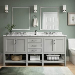 Doveton 60 in. Double Sink Sage Green Bath Vanity with White Engineered Marble Top (Assembled)