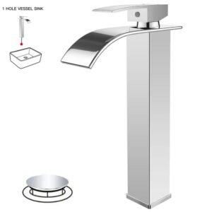 Single Handle Waterfall Vessel Sink Faucet with Drain Kit Included in Polished Chrome