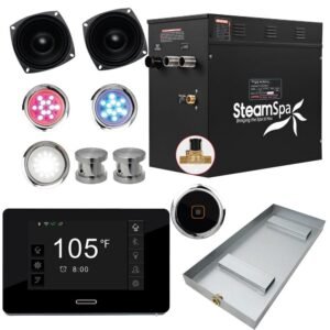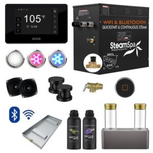 Black Series 12kW Steam Bath Generator with Wireless Control Bluetooth/Wifi Operation and Auto Drain in Matte Black