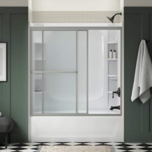 Deluxe 55-60 in. W x 56 in. H Sliding Tub Door in Silver with Rain Glass