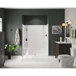 Accord Seated 36 in. x 60 in. x 74-1/2 in. Shower Kit with Age-in-Place Backers in White