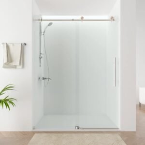 56–60 in. W x 76 in. H Frameless Sliding Shower Door in Titanium Gold with Explosion-Proof Clear Glass
