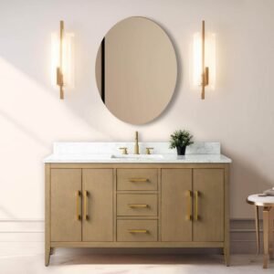 60 in. W x 22 in. D x 34 in. H Single Sink Bathroom Vanity Cabinet in Natural Oak with Engineered Marble Top
