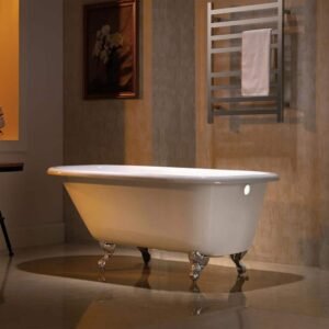 60 in. x 30.25 in. Cast Iron Roll Top Clawfoot Soaking Bathtub with Reversible Drain in White