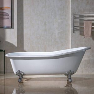 67 in. x 30.6 in. Cast Iron Single Slipper Clawfoot Soaking Bathtub with Reversible Drain in White