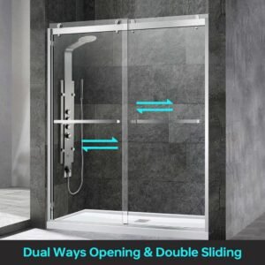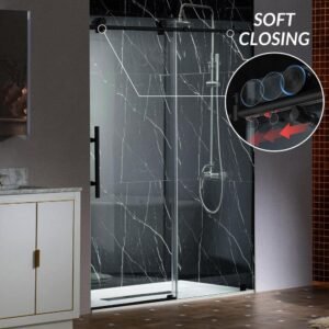 60 in. W x 76 in. H Sliding Frameless Shower Door with Soft Close System and 3/8 in. Clear Glass in Black Finish