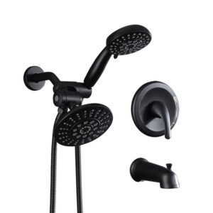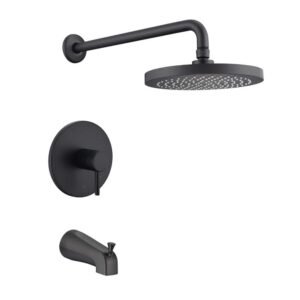 Single-Handle 11-Spray Round High Pressure Shower Faucet with Tub Spout Shower Head in Matte Black (Valve Included)