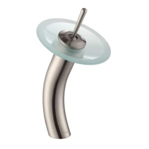 Single Hole Single-Handle Low-Arc Glass Waterfall Vessel Bathroom Faucet in Satin Nickel with Frosted Glass Disk