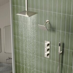 1 Handle 2-Spray 14 in. Rectangle Rain Shower Faucet and Hand Shower Kit in Brushed Nickel