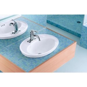 Santa Monica 20 in. Bathroom Sink in White Ceramic Oval Drop-in with Overflow and 4 in. Faucet Holes