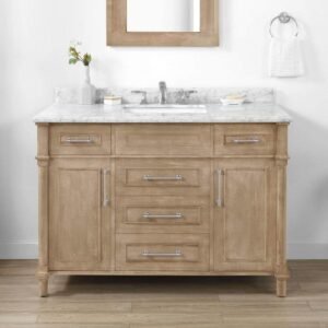 Aberdeen 48 in. Single Sink Antique Oak Bath Vanity with Carrara Marble Top (Assembled)