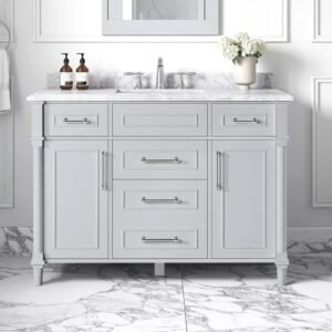 Aberdeen 48 in. Single Sink Freestanding Dove Gray Bath Vanity with Carrara Marble Top (Assembled)