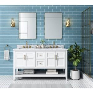 Sturgess 61 in. Double Sink White Bath Vanity with White Carrara Marble Top (Assembled)