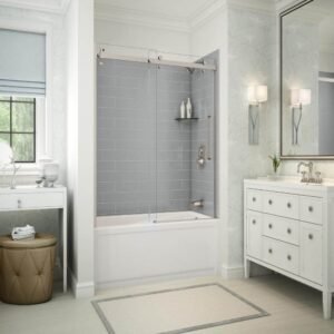 Utile Metro 30 in. x 59.8 in. x 81.4 in. Right Drain Alcove Bath and Shower Kit in Ash Grey, Brushed Nickel Shower Door