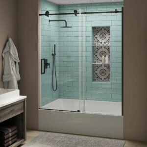 Elan Hart 56 to 60 in. W x 66 in. H Sliding Frameless Tub Door in Matte Black with 3/8 in. (10mm) Clear Glass