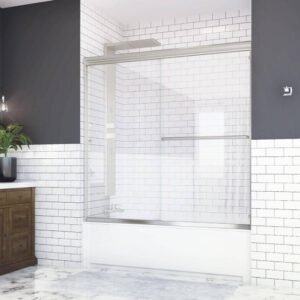 Contemporary 58-1/2 in. W x 58-3/4 in. H Frameless Sliding Bathtub Door in Nickel with 1/4 in. Tempered Rain Glass