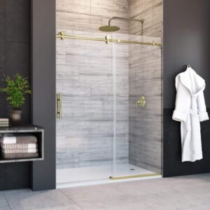 Eclipse 60 in. W x 76 in. H Frameless Sliding Bathtub Door in Brushed Gold with Clear Glass
