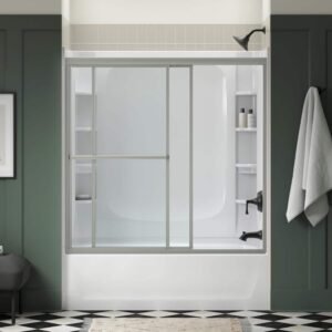 Deluxe 55-60 in W x 56 in. H Sliding Framed Bath Door with 1/8 in. Clear Glass in Silver
