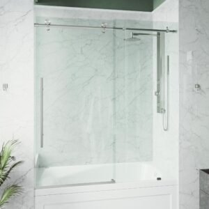 Elan 56 to 60 in. W x 66 in. H Sliding Frameless Tub Door in Chrome with 3/8 in. (10mm) Clear Glass