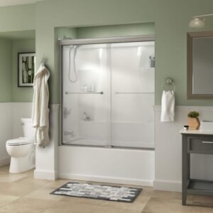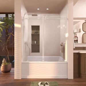 Eon 60 in. W x 60 in. H Sliding Semi Frameless Tub Door in Chrome Finish with Clear Glass