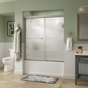 Everly Traditional 50-1/8 to 59-3/8 in. W x 58-1/8 in. H Semi-Frameless Sliding Bathtub Door in Nickel, Frosted Glass