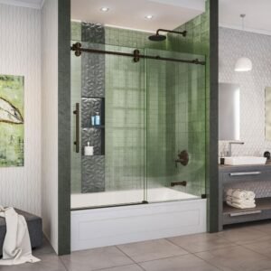 Enigma-XO 55-59 in. W x 62 in. H Fully Frameless Sliding Tub Door in Oil Rubbed Bronze
