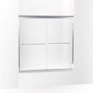 Fluence 59.625 in. W x 58 in. H Sliding Frameless Tub Door in Bright Polished Silver with Crystal Clear Glass
