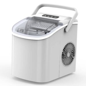 12 in. 26 lb. /24H Bullet Ice Countertop Portable Ice Maker in White, 6Mins/9-Pieces, Auto-Cleaning, w/ Basket and Scoop