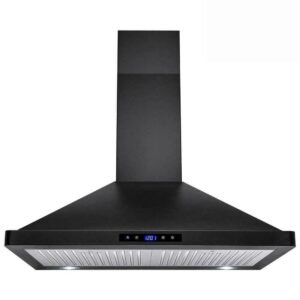 30 in. Convertible Wall Mount Range Hood in Black with Mesh Filters, Charcoal Filters and Push Button Control