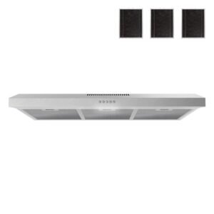 36 in. 80 CFM Viterbo Ductless Under Cabinet Range Hood in Brushed Steel, Mesh Filters, Push Button Control, LED Light