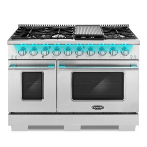 48 in. Lumin Collection 5.5 cu. ft. Double Oven Dual Fuel Range with 8 Burners, Convection Oven in Stainless Steel