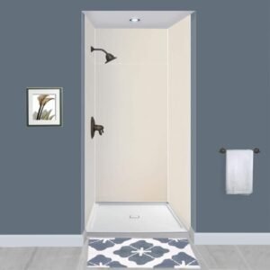 Expressions 36 in. x 36 in. x 72 in. 3-Piece Easy Up Adhesive Alcove Shower Wall Surround in Cameo