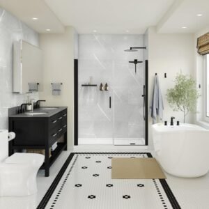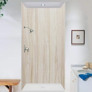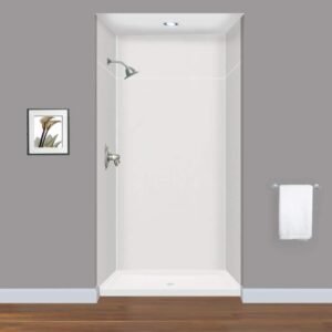 Epiphany Shower Surrounds Glue-up Alcove Wall Tiles 15.75in x 31.5in. In Smooth Marble Light Grey