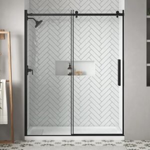 Waverly 58 1/2 in. - 60 in. W x 76 in. H Sliding Frameless Shower Door in Matte Black Finish with Clear Glass