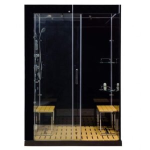 Venus 59 in. x 32 in. X 86 in. Steam Shower Kit in Black with Sliding Door, Left Side Controls and Center Drain