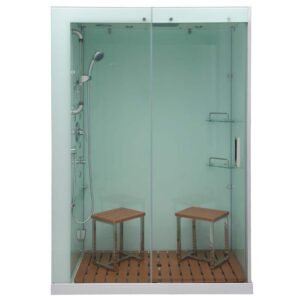 Venus 59 in. x 32 in. X 86 in. Steam Shower Kit in White with Sliding Door, Right Side Controls and Center Drain