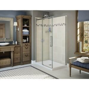 Utile Stone 32 in. x 48 in. x 83.5 in. Center Drain Alcove Shower Kit in Sahara with Chrome Shower Door