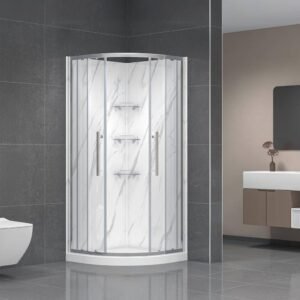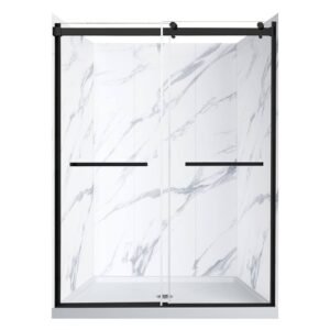Lagoon Double Roller 48 in. L x 34 in. W x 78 in. H Center Drain Alcove Shower Kit in Carrara and Matte Black Hardware