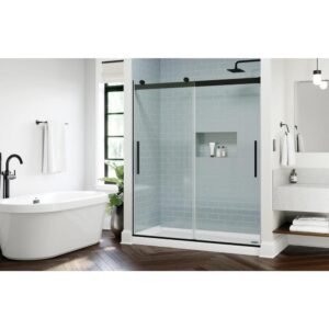 Alliance Pro BG 60 in. W x 70.375 in. H Sliding Semi Frameless Shower Door in Matte Black with Clear Glass