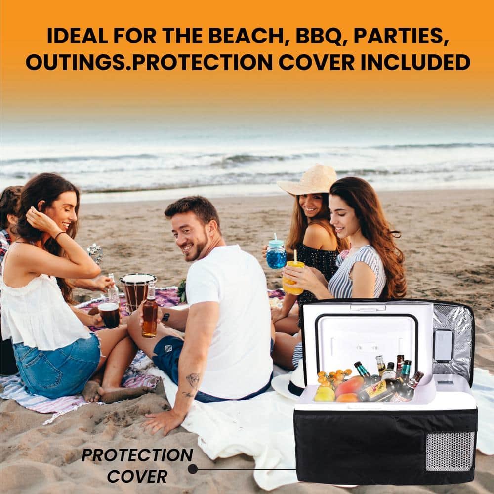 EQUATOR ADVANCED Appliances PFF07 Portable Fridge-Freezer is the perfect way to keep your food fresh and beverages cold when you’re on the go. If it’s a day trip or a camping trip, this 0.7 cu. ft. portable fridge-freezer allows you to have precise temperature control no matter the environment. The unit measuring 13 in. H x 22.4 in. W x 12.8 in. D, 2 wheels and retractable handle make it effortless to transport. Plug this unit into your vehicle with the DC power connection and if you forget to unplug it, it won’t drain your battery. And with voltage protection, you never have to worry about unforseen surges causing damage. An easy-to-read digital display and compressor cooling allows you to switch this unit from fridge to freezer based on your needs and when you’re ready to access your treats, you can easily see inside thanks to the interior light. This energy-friendly fridge-freezer is what will make your summer one to remember.