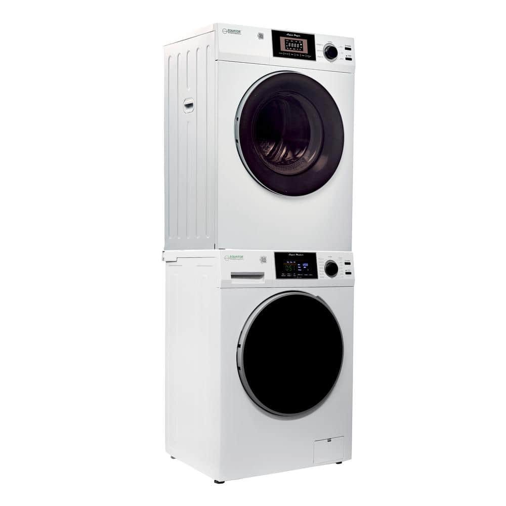 Enjoy a superior level of cleaning with every load when utilizing the top-rated features that come standard with the stackable Equator Super Washer and Compact Standard Dryer. This 110 Volt stackable set, measuring 67 x 23.6 x 22 in. (H x W x D), is compact yet spacious on the interior. It can also be used side-by-side for convenience. The EW 826 washer, designed with 15-wash programs and a 1.62 cu. ft. capacity offers a variety of cycle programs, including Normal, ECO, Heavy, Allergen, Delicate, Wool, Sanitize, and more. Pet Cycle is excellent for dog and cat owners, as it eliminates as much pet hair as possible. While in use, foam control, the add-a-sock option, an angled door, and a secure door lock elevate the experience even further. Transferring your laundry to the dryer, enjoy superior features, including a secure child lock, a Sensor Dry to conserve energy and save time, a Wrinkle Guard, 3-Heat Levels (High, Medium, Air), and a Reload Function. The ED 866 vented dryer offers various drying cycles – such as 12-mins Refresh, Shoes, Sanitize 165В°, and Allergen 131В°- and customizable drying options and heat levels that ensure both performance and convenience. It features a 3.1 cu. ft. capacity, a reversible door, a program knob, adjustable legs, a lint filter, user-friendly touch controls, and interior LED lights. Equator’s comprehensive warranty further solidifies its position as a reliable laundry solution for on-board use.