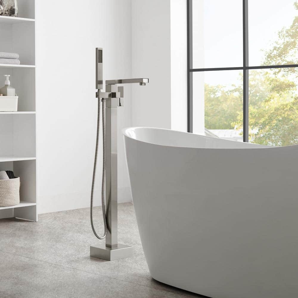 1-Handle Freestanding Tub Faucet Bathtub Filler with Hand Shower in Bushed Nickel
