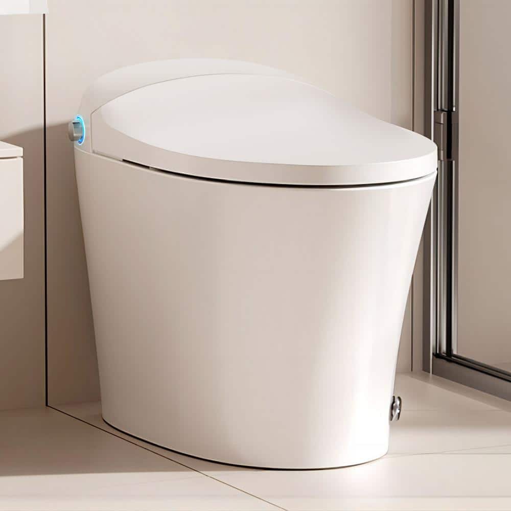 1-Piece 1/1.27 GPF High Efficiency Dual Flush Elongated Toilet in White with Heated Seat and Slow-Close, Seat Included