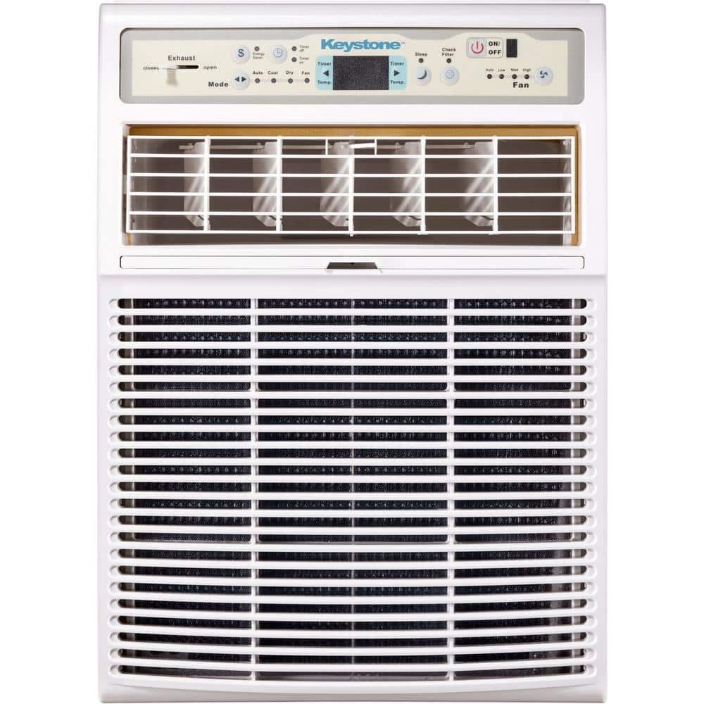 The keystone 10,000 BTU slider/casement room air conditioner is perfect for cooling your rooms up to 450 sq. ft. Designed specifically for horizontal slider or casement windows this unit is the perfect solution for homes without traditional double-hung windows. 3 fan speeds and a 4-way air direction control mean you can quickly cool your room or maintain comfort where needed. The unit also comes with built-in dehumidification capabilities of removing 1.1l per hour. The slide-in/slide-out washable filter removes dust and odors, and with the built-in filter indicator, the unit will let you know when it’s time to clean. Sleep mode keeps you cool and comfortable without keeping you awake. A programmable timer assures that you can have the unit cool during the hottest parts of the day and the energy saver mode gives you peace of mind knowing your home is comfortable, without breaking the bank.