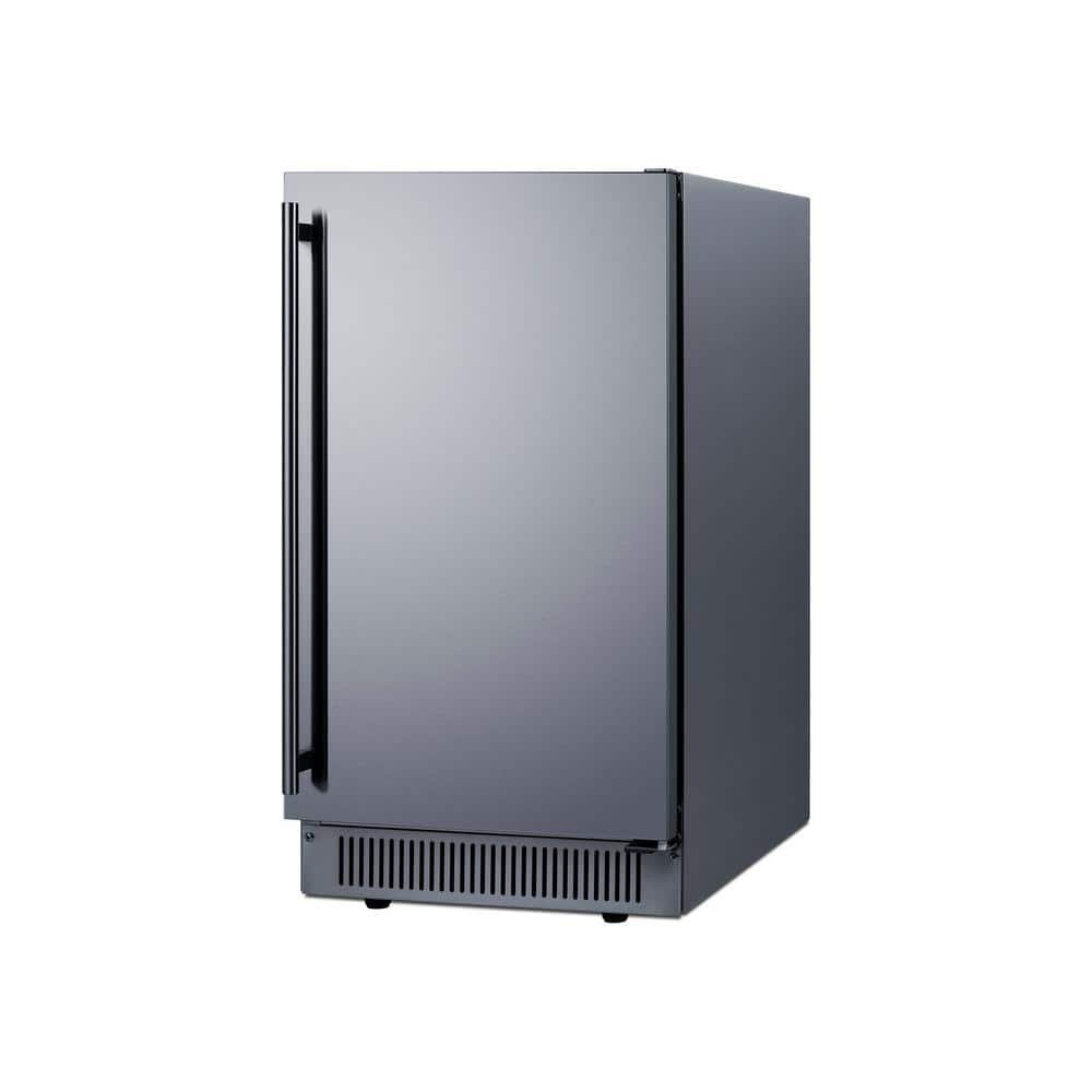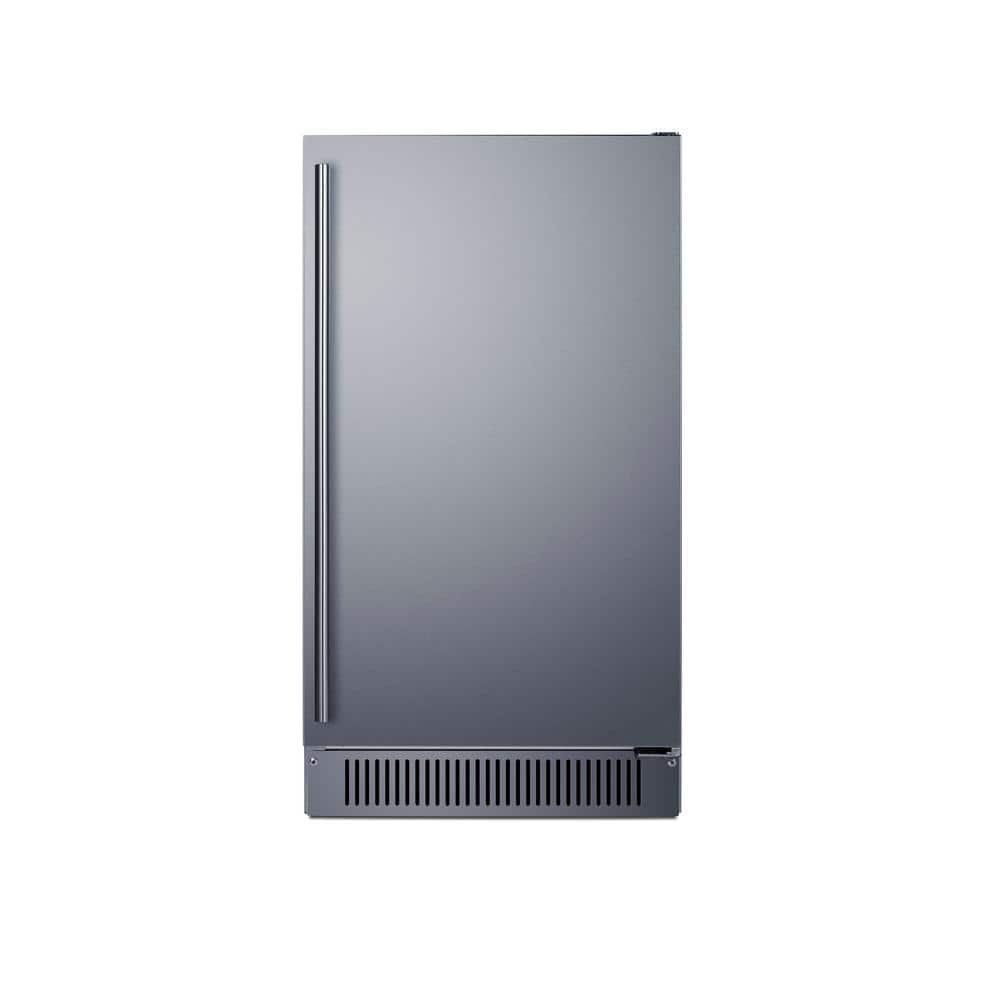 Sized just under 18 in. wide and 32.5 in. high, model BIM182OSADA features a front-breathing design for built-in installation underneath ADA-compliant counters. The height can also be raised to 34.75 in. to accommodate standard counters. We include a stainless steel kickplate extender to fill the gap. This model comes with a user-reversible door to best suit your setting. A pro-style handle is included. The complete stainless steel exterior and sealed rear is specially constructed to hold up to the outdoor elements. Inside, the BIM182OSADA shows can produce 60 lbs. of clear ice cubes ice daily. The intuitive control panel ensures ease of use. An indicator light alerts users to each step in the production process and when the bin is full. The interior features UV lighting for easy visibility and added protection against bacteria. The automatic defrost system minimizes user maintenance. This model has an internal pump and ships with a drain hose, water hose, removable ice bucket, and ice scoop. The interior wall includes a hook to hang the scoop for added convenience. With its unique size, user-friendly design, and large capacity, the BIM182OSADA is a great fit for various kitchen setups. For a weatherproof outdoor version in a standard height, see model BIM182OS. For a panel-ready version, see model BIM182ADAIF.